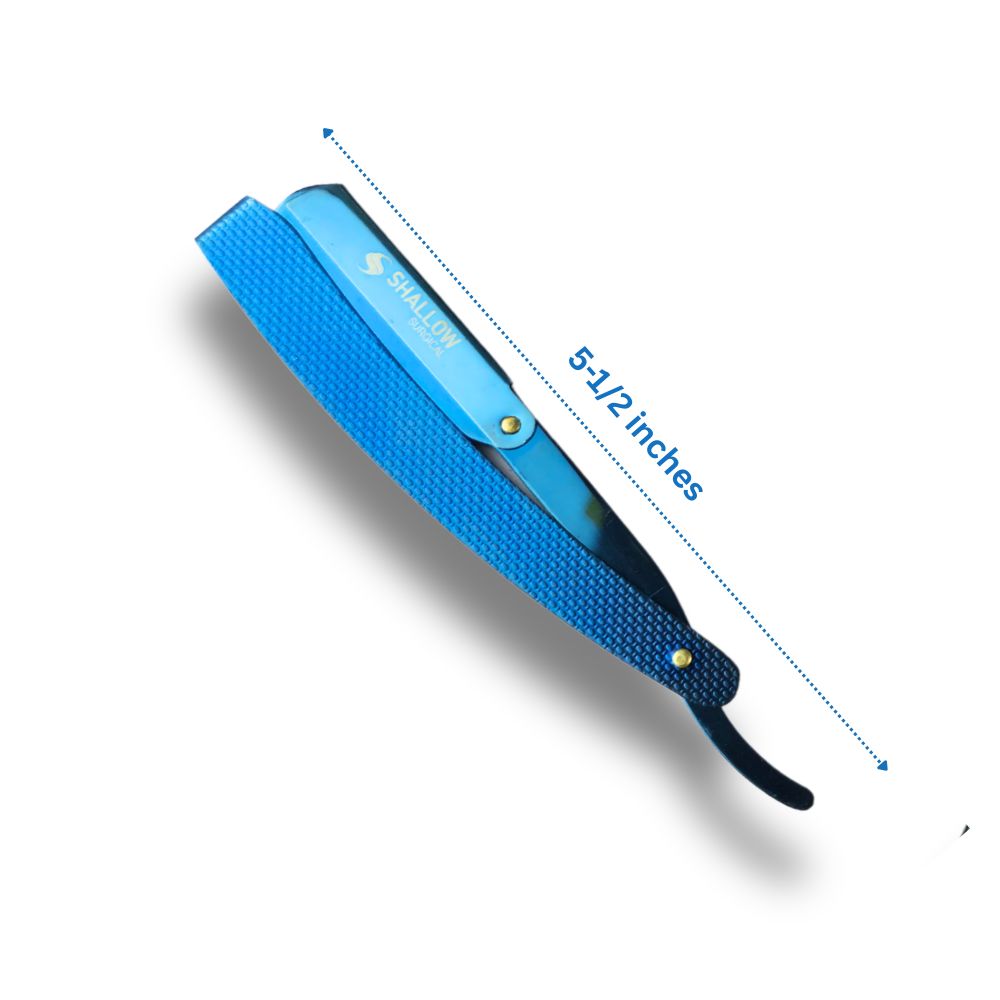 Navaja Ergonómica: Acabado azul mate a juego para un afeitado tradicional con un toque contemporáneo.