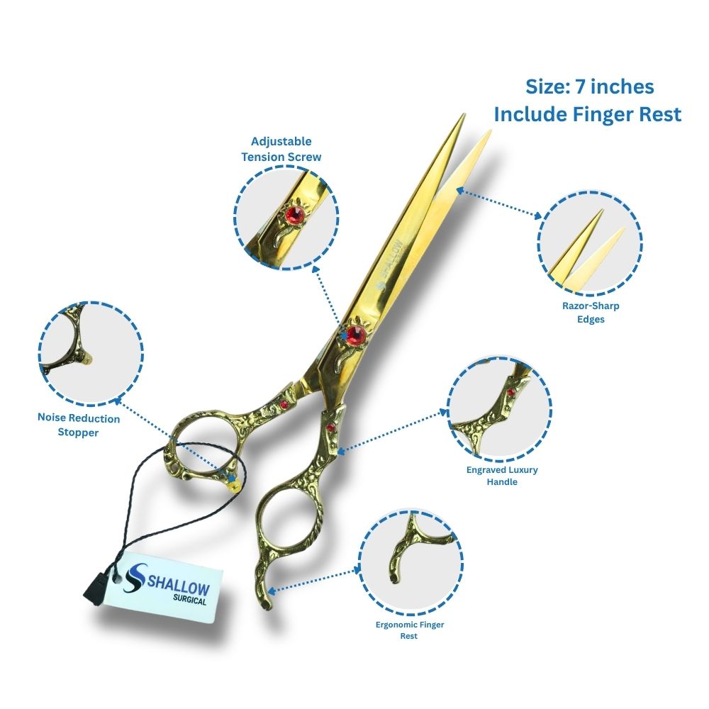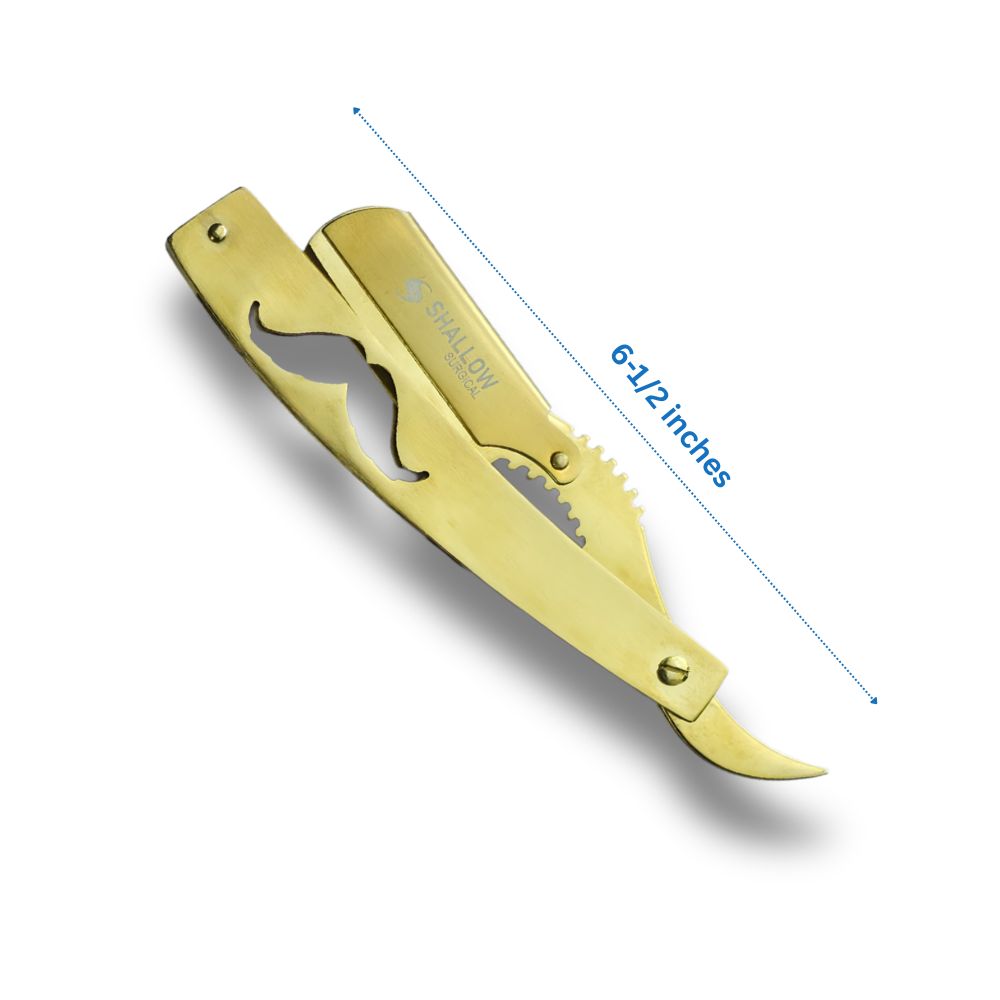 Eleva tu estación de trabajo a un nivel de realeza con el kit Oro Imperial de Shallow Surgical. No es solo un set de herramientas, es una obra de arte diseñada para el barbero que busca la perfección en el corte y una estética inigualable.