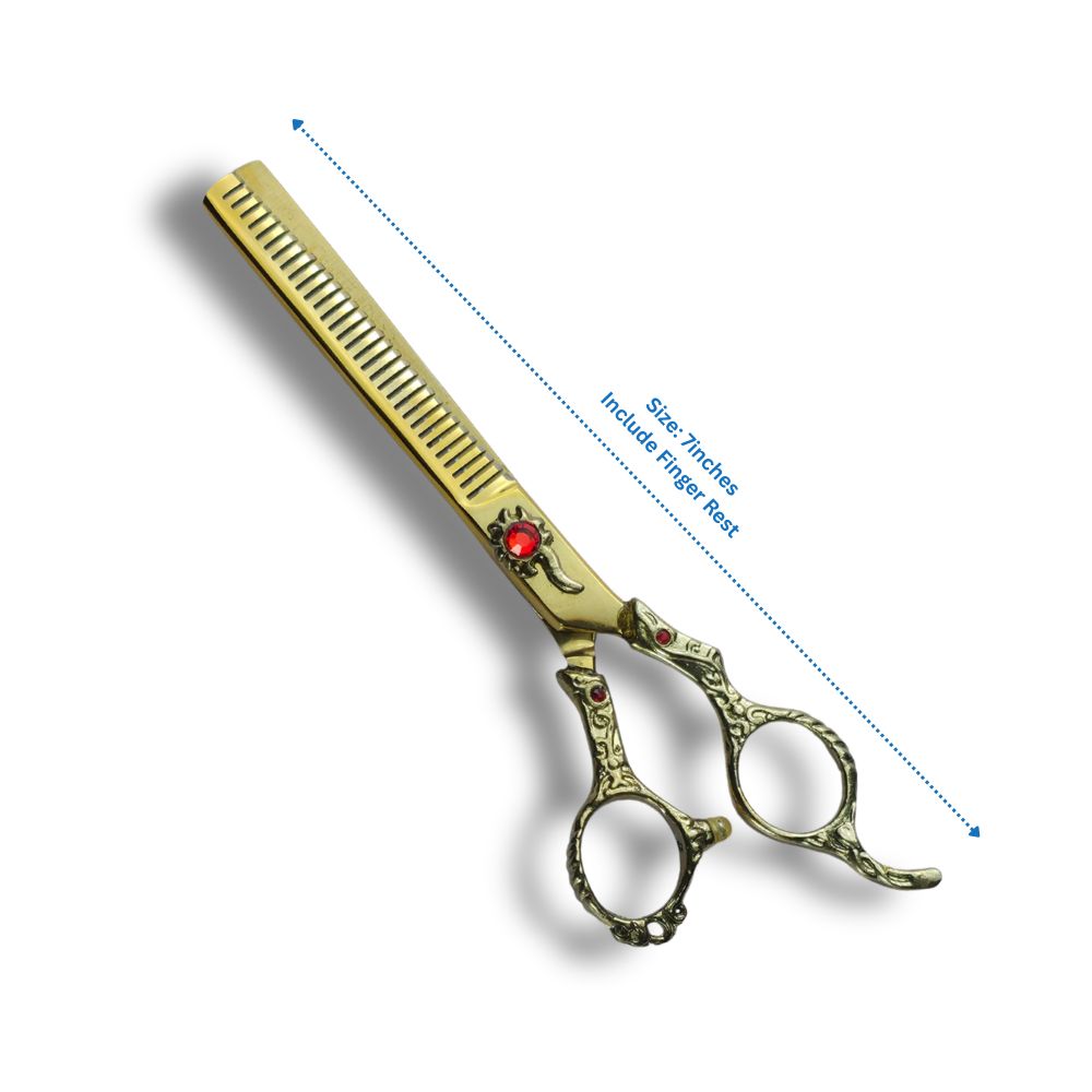 Kit de 5 Piezas: Incluye tijeras de corte, entresacar, navaja grabada, peine y estuche rojo de protección.