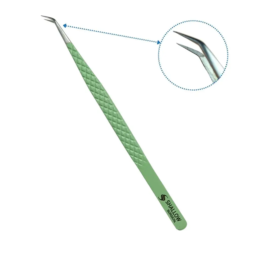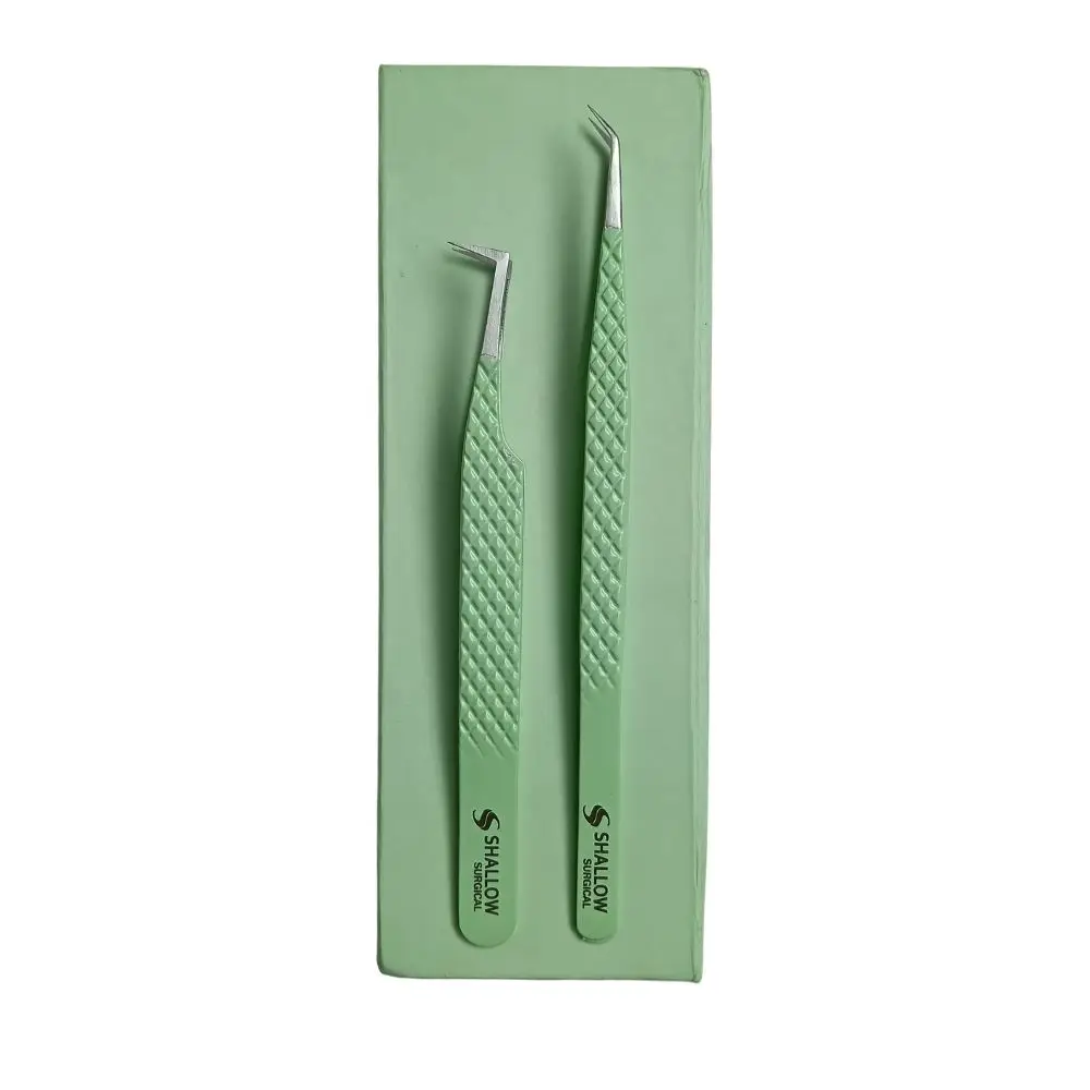 Añade un toque de frescura a tu estación de trabajo con el set Mint Diamond de Shallow Surgical. Con su exclusivo acabado en verde menta mate y agarre de diamante, estas pinzas están diseñadas para ofrecer un rendimiento excepcional en técnicas de volumen y aislamiento.
